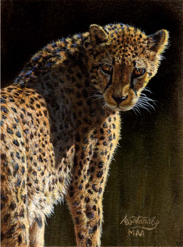 Leopard" (2.5" x 3.5" miniature acrylic painting) won
